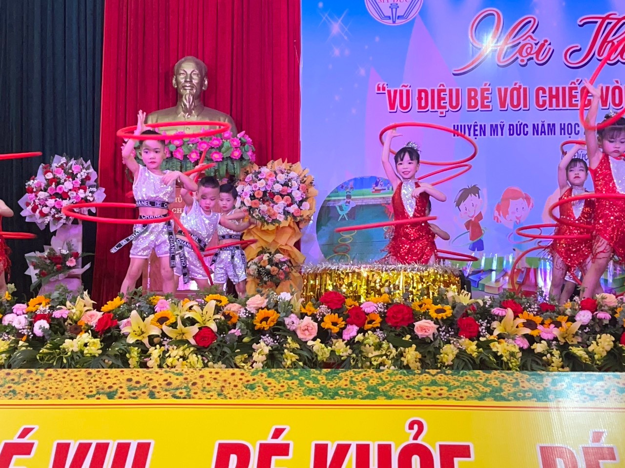 29/03/2024 A- A A+ | HỘI THI" VŨ ĐIỆU BÉ VỚI CHIẾC VÒNG XINH" NĂM 2023-2024 Xem Chia s? Thực hiện nhiệm vụ năm học 2023 - 2024 của cấp học mầm non huyện Mỹ Đức, nhằm đẩy mạnh tổ chức các hoạt động phát triển vận động, kỹ năng xã hội và thẩm mỹ cho trẻ mầm non, ngành GD&ĐT tổ chức Hội thi “Vũ điệu bé với chiếc vòng xinh ” Hôm nay ngày 27/3/2024 trường Mầm non Hợp Tiến A đã chọn ra 1 đội gồm 12 thành viên tham gia Hội thi “Vũ điệu bé với chiếc vòng xinh”. Với sự nỗ lực rèn luyện không ngừng nghỉ và cháy hết mình trên sân khấu các con đã hoàn thành xuất sắc phần thi của mình và đạt được giải Nhì cụm. Thay mặt nhà trường xin chân thành cảm ơn các cấp lãnh đạo đã tạo ra một sân chơi bổ ích để các con được giao lưu học hỏi. Xin chân thành cảm ơn các quý phụ huynh và tập thể Sư phạm Trường MN Hợp Tiến A luôn đoàn kết, giúp đỡ nhau để cùng nhau hoàn thành xuất sắc mọi nhiệm vụ được giao. Dưới đây là 1 số hình ảnh của hội thi. Tập tin đính kèm Tải về
