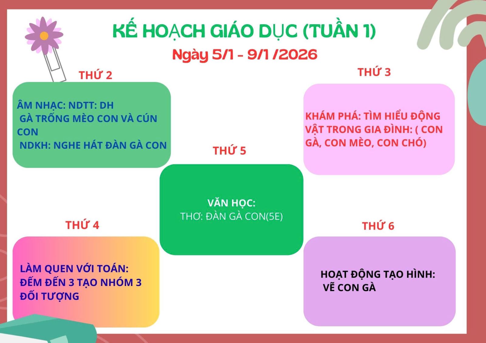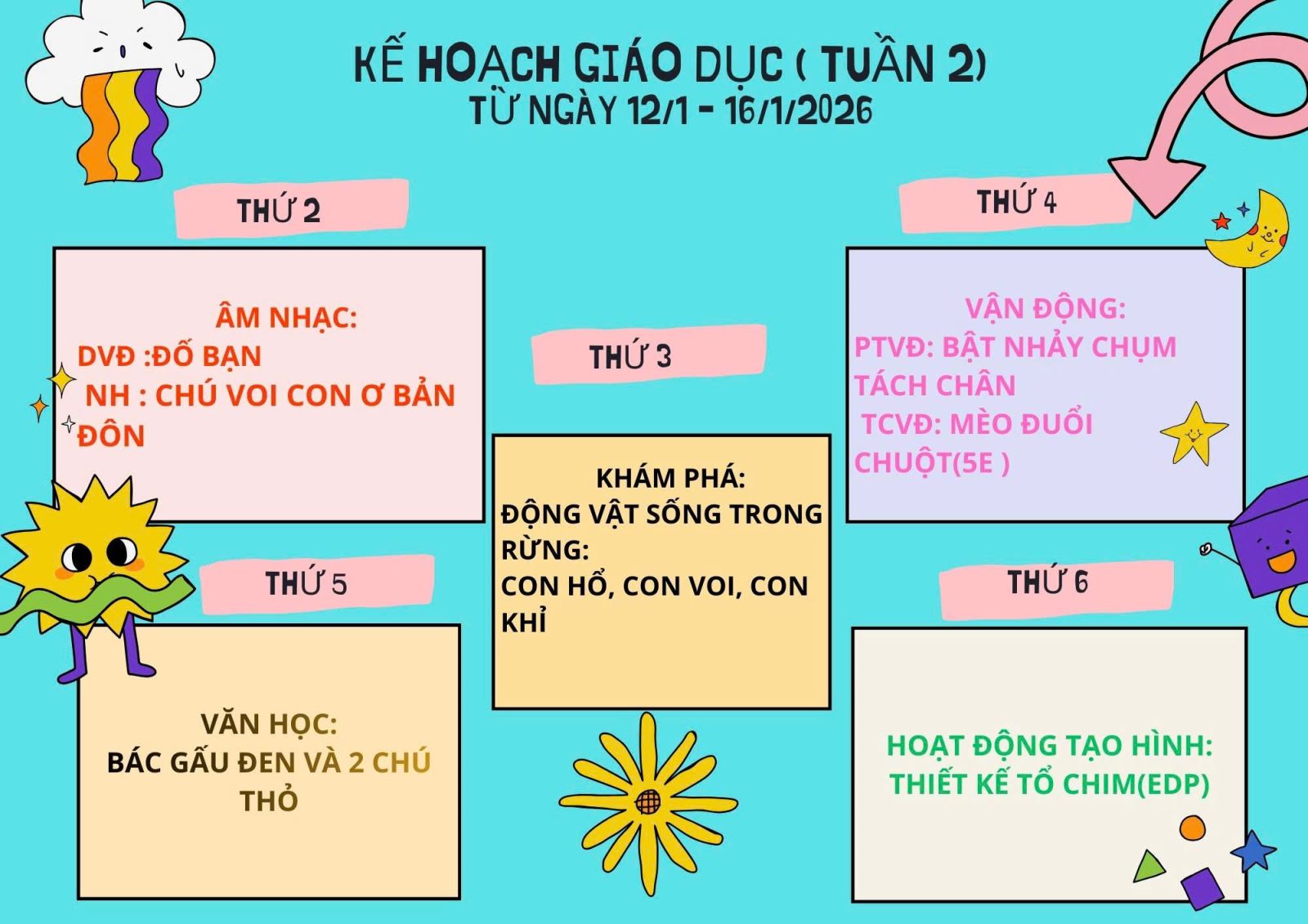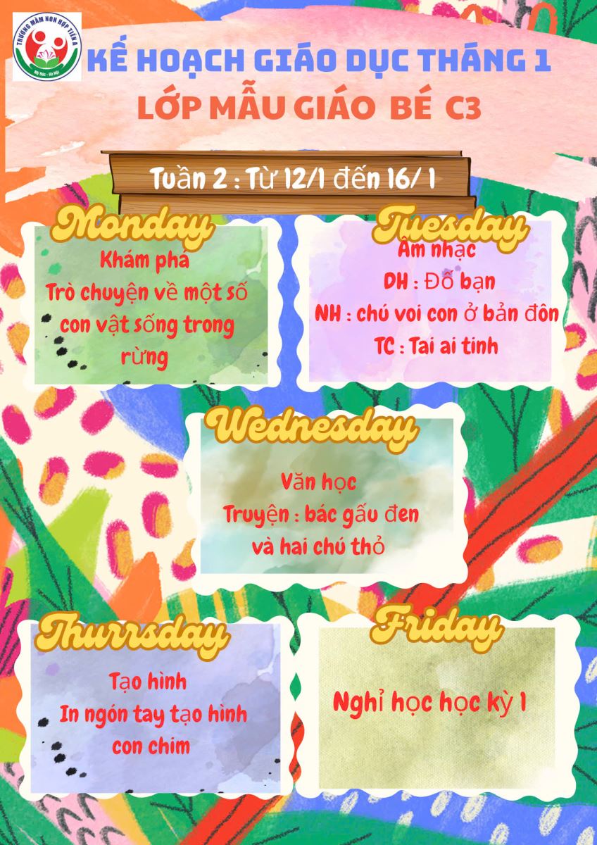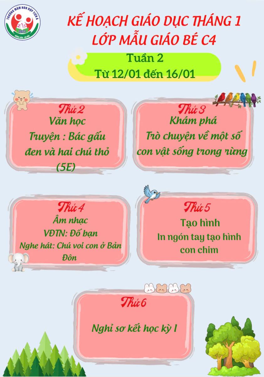 06/01/2026 A- A A+ | KẾ HOẠCH GIÁO DỤC KHỐI MẪU GIÁO BÉ THÁNG 01/2026 Xem Chia s? Kế hoạch giáo dục tháng 01- Khối mẫu giáo bé (Từ ngày 05/01 đến ngày 30/01/2026) _____ ____ ❤️____ _____ Trường Mầm non Hợp Tiến A Tập tin đính kèm Tải về