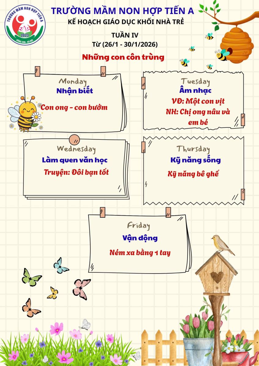 06/01/2026 A- A A+ | KẾ HOẠCH GIÁO DỤC KHỐI NHÀ TRẺ THÁNG 01/2026 Xem Chia s? Kế hoạch giáo dục tháng 01- Khối nhà trẻ (Từ ngày 05/01 đến ngày 30/01/2026) _____ ____ ❤️____ _____ Trường Mầm non Hợp Tiến A Tập tin đính kèm Tải về